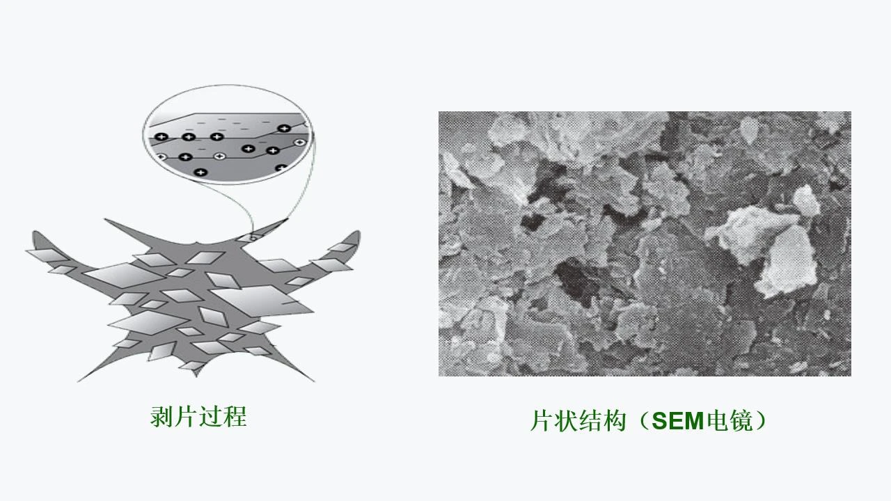 本产品制备工艺中采用表面电荷改性工艺,以及高浓剥片提纯工艺,使层状矿物充分解离,增加比表面积,比表面积达到600~900 m2/g。并且增加了矿物絮凝剂的粘度。